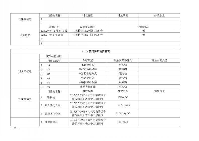 2021年第二季度环境信息公开表