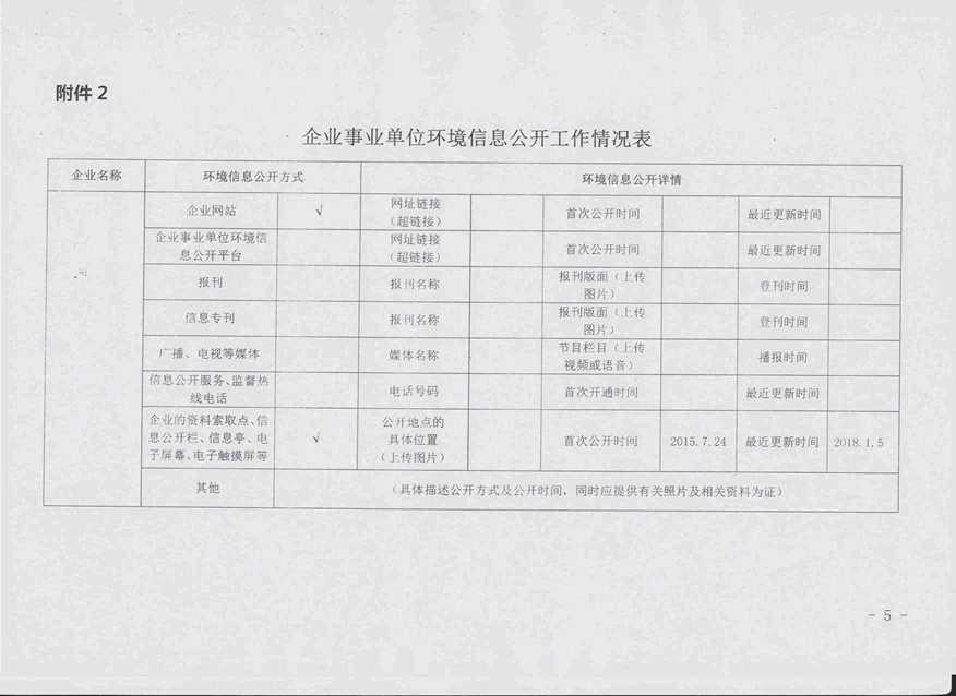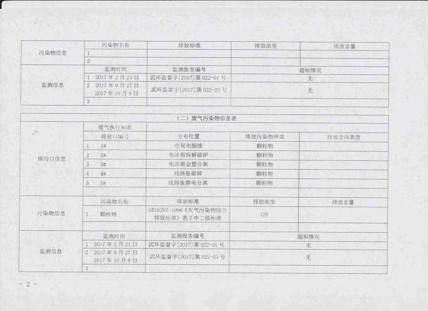 2017年第四季度环境信息公开